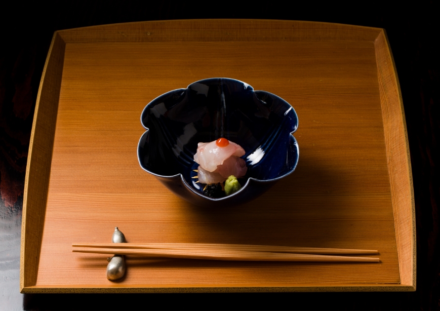 The design concept of the renovation synchronized these characteristics of Matayoshi’s culinary creations — the balance of sensitivity and dynamism – in a way that enables guests to enjoy their meal in its natural state.