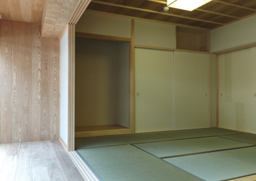 This house was planned as a three-layered double-family home in land suffered a severe earthquake in the past. The first and second floors which are structured by reinforced concrete are provided for the older generation in the family as they support firmly the upper floor. The third floor which is structured by wood reflects a light-footed living style of the younger generation family members. The space under the same roof keeps each other’s privacy but still binds them together.