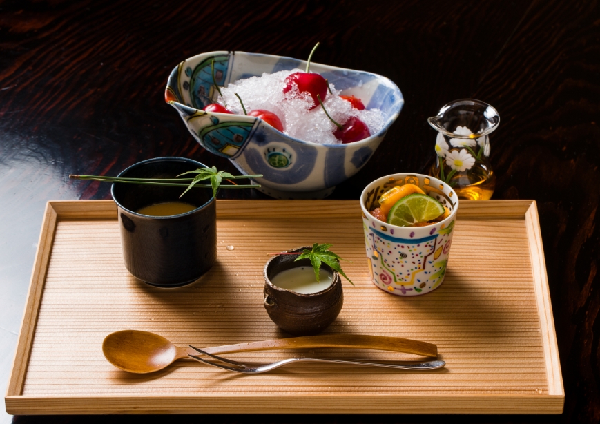Chef Matayoshi’s culinary creations are generated by the balance between his natural sensititivy and the dynamism formed by the Okinawan environment where he spent his childhood.